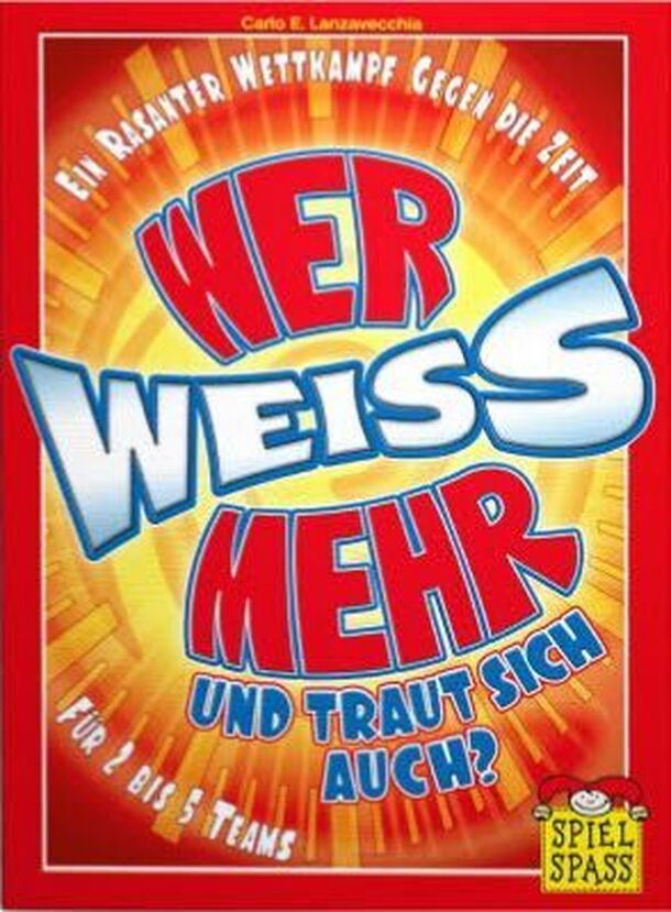 Wer weiss mehr und traut sich auch? ("Who knows more and will dare too much?") is a party game for 2-5 teams (2-15 players) that will test their powers of concentration and cultural knowledge. In each round, the teams first bid on how many items they can name from a particular category – flowers, car brands, fish, alcoholic drinks – then the team with the...