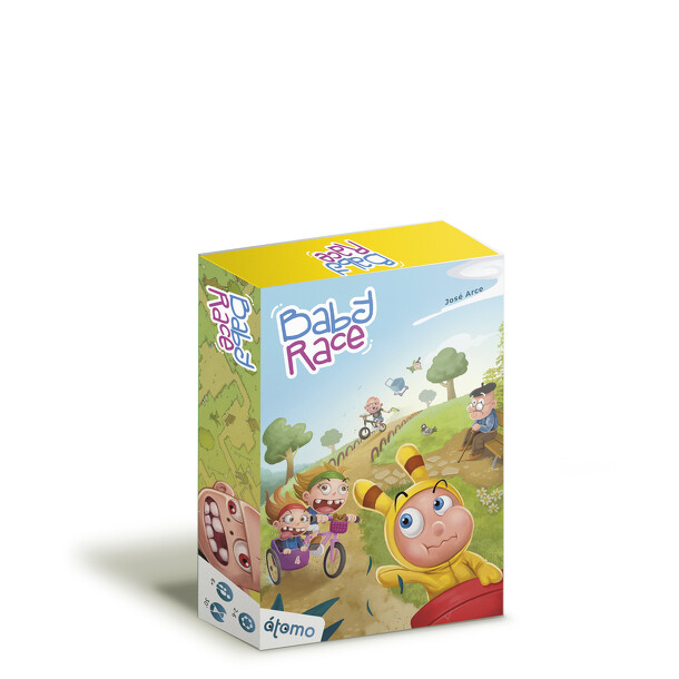 An amazing race in the park is about to start. However, it’s a dangerous racetrack: Bends, stones, potholes… Who will be the winner? 1ST Manage to roll your die inside the Speed-up area 2nd Put your hand quickly on the Position card 3rd Move through the park to the finish line Baby Race is a family and fun boardgame where you need ability and interaction...