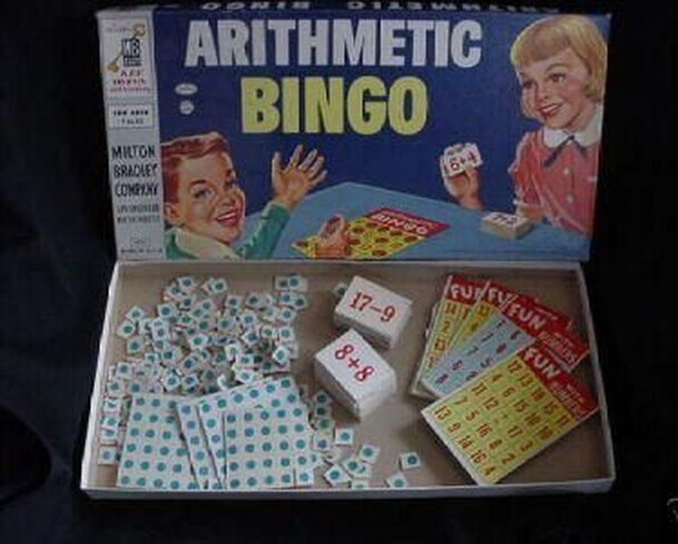 From the box: Bingo Bandit is a bingo game that "combines the luck of a one-armed bandit and bingo with clever strategy!" User description: The game features a large plastic bingo machine with a slot in the top for tokens which fall out through chutes at the bottom when the arm of the slot machine is pulled. The object of the game is to make complete rows...