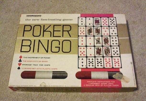 From the box: Poker Bingo consists of an exciting variety of five games using Bingo boards, chips and a deck of special size playing cards, which are all included. Each game combines the play of Bingo with a poker style. Each player takes a Poker Bingo board and chips for markers. The dealer shuffles the cards and places them face down in front of him. He...