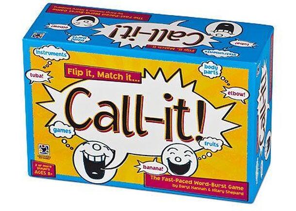 Call-it! is a fast-paced word-burst game. Each player has a category card that represents him/her (and it turned over for the other players to have memorized). The players take turns flipping symbol cards. When you reveal a symbol that matches an opponent, you have to be the first to call out a word from their category in order to win their card. The...