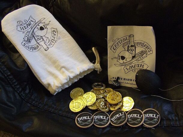 Captain Morgan's Wrath is the pirate drinking game by Party Hard Corps. Spinning a tee-totum (think a dreidel), the players are encouraged to be as loud with their yaaaaars as possible while the it spins, or even bang on the table to try to make a player "walk the plank!" First player with five doubloons and the captain's patch is the commodore, and the...