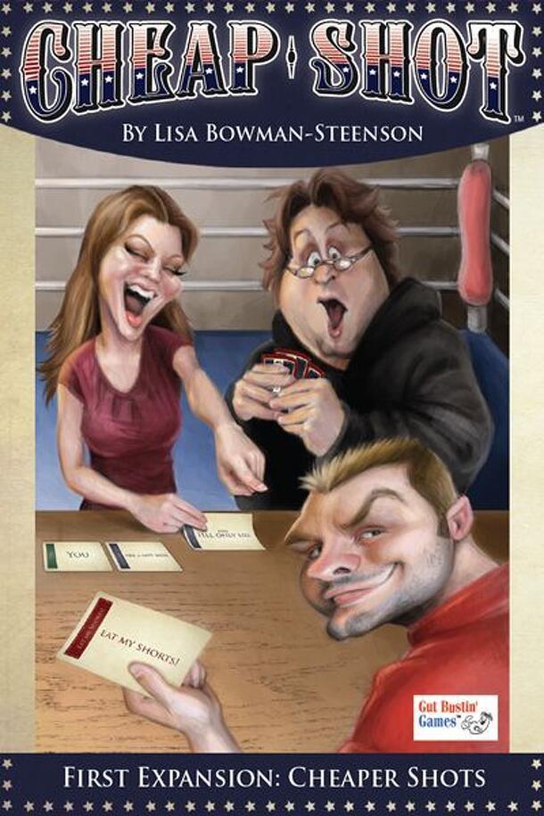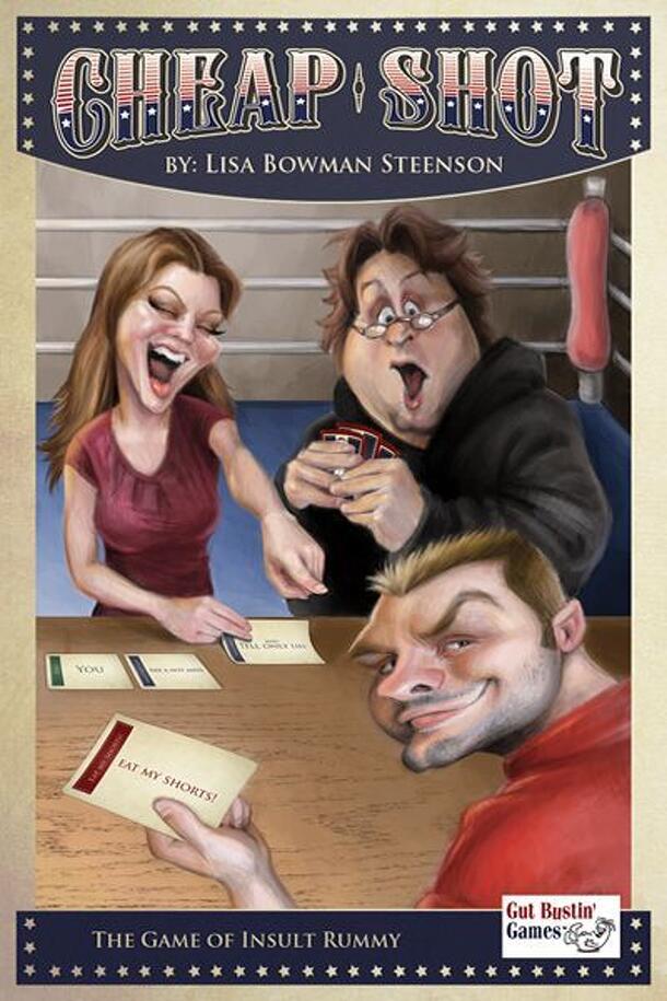Cheap Shot is a rummy-style game of insults, with each player starting with a hand of seven cards, which take the form of subjects, conjunctions, verbal phrases, and retorts. On a turn, the active player tries to use the cards in hand to create an insult: "Your Secret Boyfriend / is a drama farmer / and / tells only lies." Unless the targeted player can...