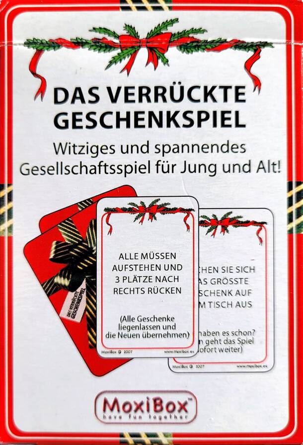 From the designers homepage: The Crazy Gift Game, a true party game! Have all your guests bring one or more small, big, funny, strange and crazy gifts and play The Crazy Gift Game to see who ends up with the most gifts in the end! Let the cards send the gifts to one and then another person! See the Lucky Lot go and disappear - and maybe grow again! A whole...