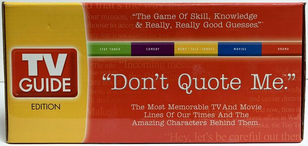 By successfully identifying famous (and not so famous) quotations, players move their pawns around a pentagonal board. Players move three spaces by guessing without taking a hint, two spaces with one hint, or one space for picking the right answer from a multiple choice list. The first player around the board wins. The categories are: Comedy (Sitcoms...