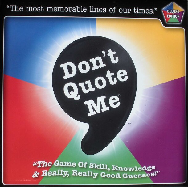 Don't Quote Me - Deluxe Edition is a trivia game where players are given quote (along with other possible hints) and are given points for giving the name of the person who said the quote. Partial credit is given depending on how many hints were needed. Don't Quote Me - Deluxe Edition differs slightly from Don't Quote Me - Original Edition in that the...