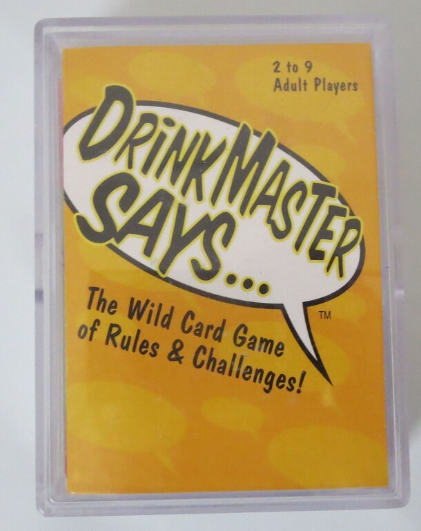 From the back of the box: DrinkMaster Says is the ultimate party in a pack. The game is an exciting mix of rules and challenges, loaded with non-stop action. Once you start playing you may never want to stop! The object of the game is to be the first player to get rid of all your cards. Along the way, you might have to drink with o hands, balance stuff on...