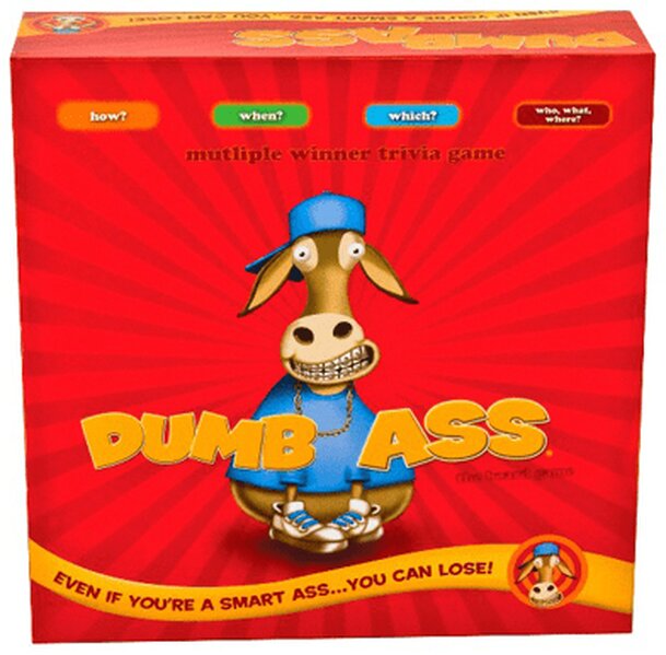 From the back of the box: From the makers of Smart Ass, comes a brand new trivia guessing game - Dumb Ass!. It's a new way to play your favourite board game, with all new categories. With Dumb Ass, the all new 'Which', 'How' and 'When' question categories can produce multiple winners nearly every turn... Plus there is also the favourite 'Who', 'What' and...