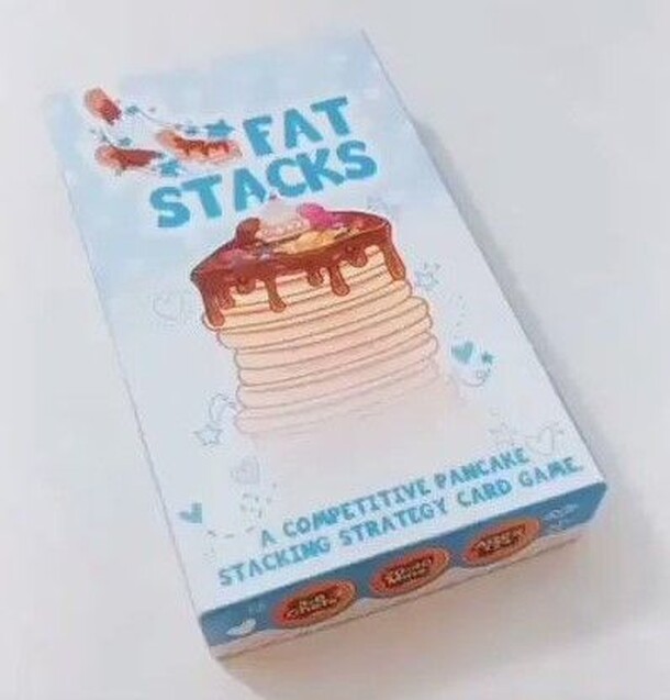 In FAT STACKS, you and your friends compete to build the tallest and tastiest pancake stack! Use classic pancake flavors and toppings, as well as some ~special~ ingredients other chefs wouldn’t dare to use! The game begins by drawing 4 cards and a buttermilk pancake. Begin your turn by choosing one of three options: draw 2 cards and play 2 cards from your...
