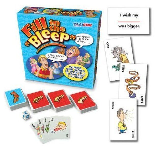 Fill in the Bleep is the single answer card game that creates a thousand laughs. Players are dealt BLEEP cards and are presented a sentence with a missing word. Players then fill in the blank with their best BLEEP card based on the die roll, (Funniest, Quirkiest, Choice). The dealer will then Fill in the BLEEP with the best submission. But beware of action...