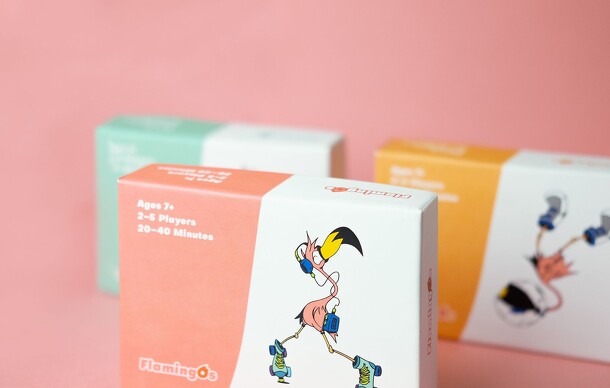 Get tropical with FlamingOs! Pair, swoop, block, and steal to win! FlamingOs is a fun card game for 2–5 players. Players take turns drawing cards and pairing mingos to earn shrimp. 10 shrimp points earn a player 1 'O' card. (Shrimp cards are worth 1 point, Jumbo Shrimp cards are worth 5 points.) The first player to get 3 'O' cards wins. But watch out!...