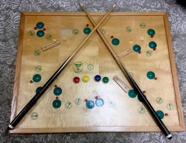 Bumper Golf is a deluxe version of the carom golf game, you might play at a Parks and Recreation building. The game board depicts an entire 18-hole golf course. Players shoot their 'balls' (wooden disks) from the numbered tee spots and aim for the equivalent numbered 'hole' (cup depression.) There are two ways to play. In the first version, each player...