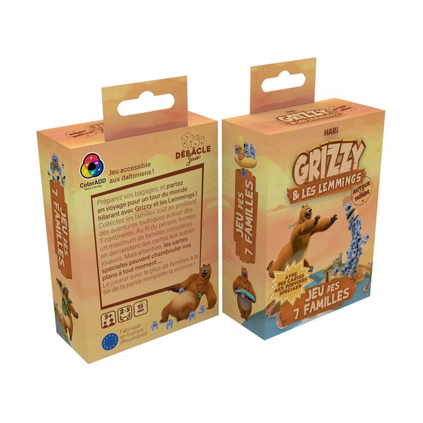 Welcome to the hilarious world of Grizzy and the Lemmings! Collect families while enjoying wacky adventures around the globe. But beware: special cards can shake up your plans at any moment! The game consists of 7 families, each representing a place in the world: Scotland, Asia, Canada, etc. The 5 cards in a family each represent a gadget, an animal, a...