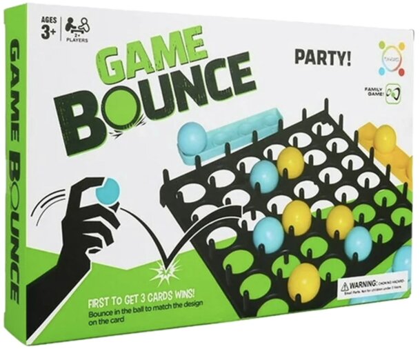 How to play: 1.) DRAW CARD. Each has a unique design. 2.) BOUNCE BALL. REPEAT. The ball must bounce at least once before it goes into the tray. If you use all your balls, take one out of the tray to keep going until someone is able to… 3.) MATCH CARD. Line up the balls of your color in the tray to match the design on the cards. 4.) GRAB CARD If you’re the...