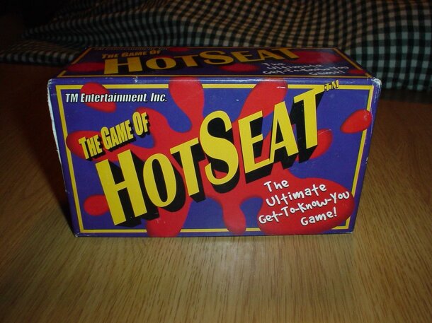 Players are dealt five cards. The first player rolls the die to determine which player is on the HotSeat. They must then truthfully answer a question asked by the player who rolled the die. They may use a Pass card to get out of answering, or a Rebound card to force the the asking player to answer the question. The first player to use all of their cards...
