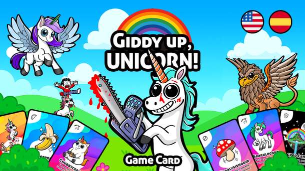 Giddy Up, UNICORN! is a fast-paced, chaos-fueled card game where cute turns deadly and glitter meets madness. Designed for 2–5 players, it combines set collection, "take that" mechanics, and absurd humor in a world where unicorns have gone rogue. Each turn, players draw and play cards from a 65-card deck filled with magical fruits, annoying shrooms...
