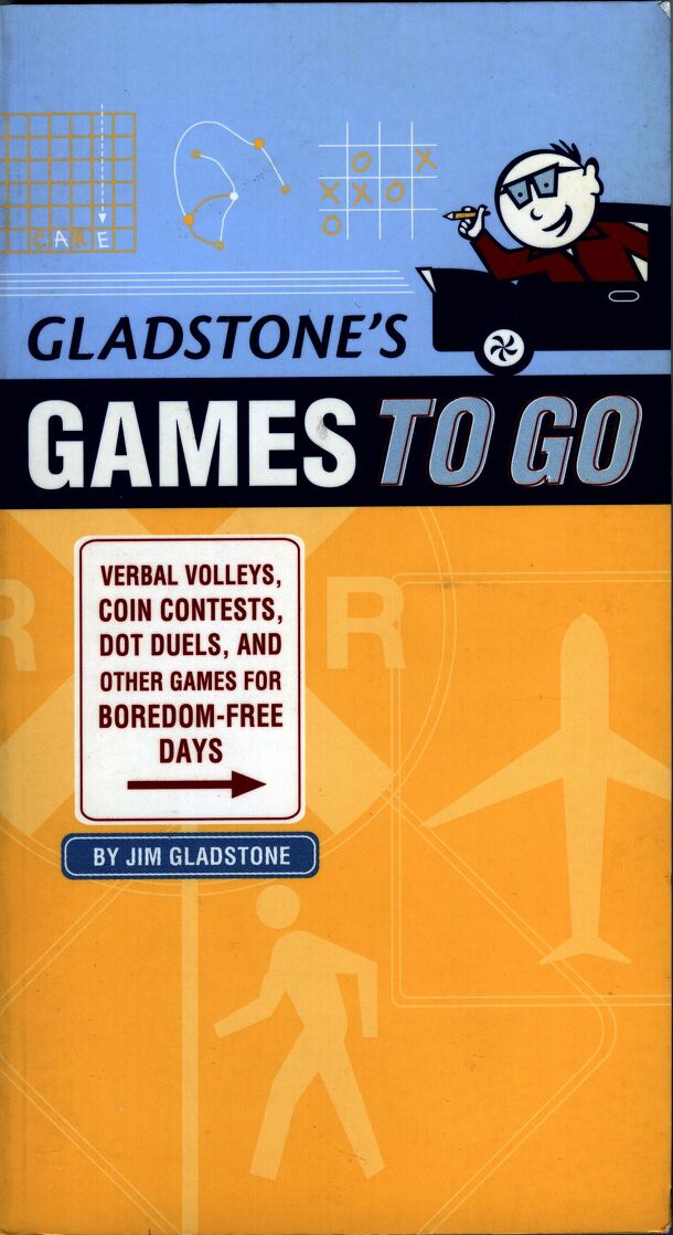 Gladstone's Games to Go describes over 45 games, none requiring any special equipment beyond paper, pencils, and coins. The book is divided into the following sections: I. VERBAL GAMES (no equipment needed) II. COIN GAMES III. PEN-AND-PAPER GAMES A. General (Tic-Tac-Toe variants and Nim) B. "Dots and Doodles" C. "Hidden Secrets" D. Word Games Most of the...