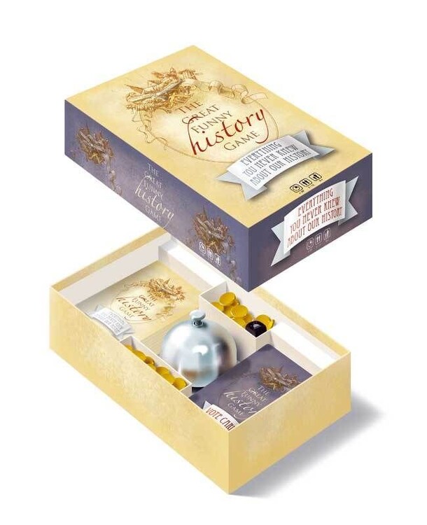 A party game that takes the form of a trivial quiz with a physical element. There are 300 questions in total, each question comes with 3 possible answers. For each correct answer a player gets a token. The first player to get 10 tokens wins. Playable with up to 12 people, 300 questions with 900 answers, 60 tokens a hotel bell and a dice. Try to guess who...