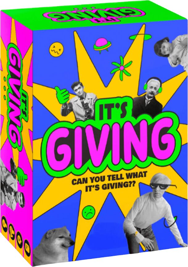 It's Giving is all about capturing the vibe of an image and giving it your own hilarious twist. Each round, one player reveals an image card to the group. From there, it's up to each player to come up with the funniest "It's Giving" card to describe the image and the energy it's giving off. Whether it's a cat wearing sunglasses or a llama stuck in a...