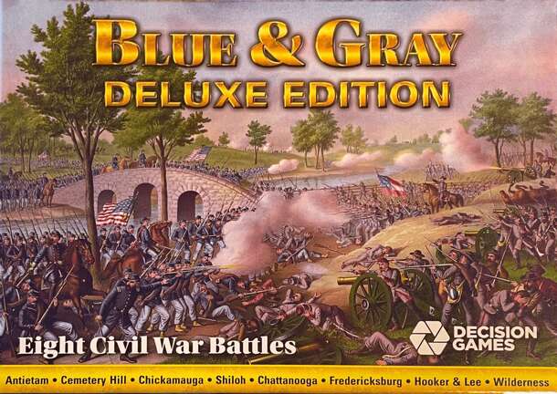 Blue & Gray: Four Civil War Battles is a Tactical level board-wargame where players maneuver colorful card board counters on three color maps of the actual battle sites. A hexagonal grid superimposed upon each map regulates the deployment, movement, and battle engagement of each unit. The colorful counters represent the infantry, cavalry, and artillery...