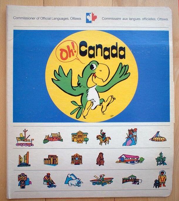 This multi-faceted colorful bilingual game was issued without charge to schools and citizens who requested a copy from the Commissioner of Official Languages of the Canadian Federal Government's Language Development Program. All of the components of the game fit into the cardboard game board, which when closed is a large envelope that is 35.7cm long x 31cm...