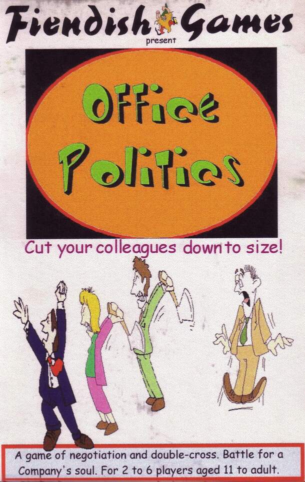 In Office Politics, players attempt to establish themselves as the dominant force in a company, which is represented as a pyramidal hierarchy of departments. Players weave their webs of influence through the company, starting from the bottom and spreading through the connections among departments. To establish control over a department, a player must spend...