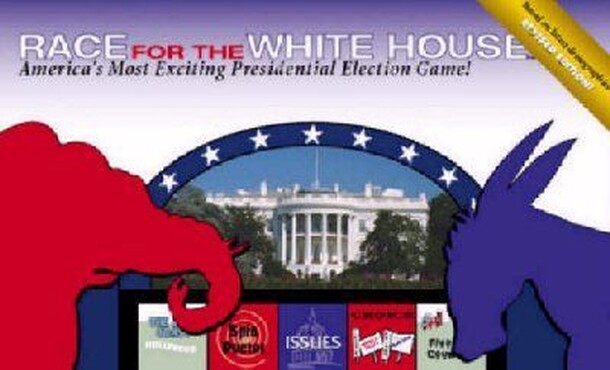 This hefty game gives players the opportunity to battle to become President of the United States. The board is divided into an inner board, in which electoral votes are collected via luck; and an outer board in which votes are collected via strategic positioning. Players can trade votes, funds, and favors throughout the game as they try to set themselves...
