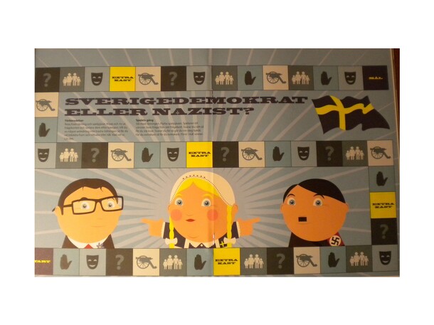 Every player chooses one of the six parties and play policies/opinions and move the party markers on a hexagonal voter map with 91 voters. For every card, the player gets to strengthen the relation between two parties who agreed, or weaken the relation between two parties who disagreed. At the end of the game, the weakest relations are removed, until there...