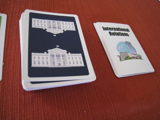 The game starts with players designing the Town by choosing from the 12 available districts, ranging from forest to the central business district. Changing the set up of the Town means that the game has more variability over time as districts advantage different candidates. Players are also assigned purple 'values' cards, which they share with the players...