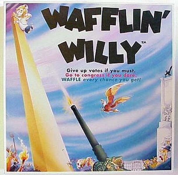 Race your cutout of Bill Clinton along the board, trying to keep ahead of Clinton's Past! The storm cloud cutout figure for "The Past" starts on the board a few turns behind everyone else. Players can spend votes to keep ahead of The Past. The object is to be the player with the most votes who reaches the end of the board's track. However, it is also...