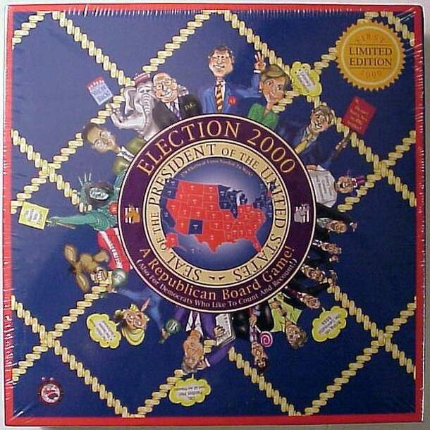 Produced in a limited run of 1000 copies, bills itself as "A Republican Board Game," and features cartoon renditions of Republican notables on the cover in a favorable light while poking fun at the Clintons, Gore, and the "Liberal" press. The game board and "butterfly ballot" cards serves as a memory jog of events during both the 2000 election campaign and...