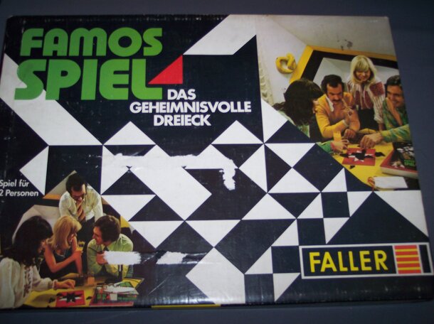 From the instruction booklet: "The Tricky triangle: This is just the thing for those who don't give in easily! This is a game for 1-2 players, either as a team or in competition. In all there are 25 geometrical figures which have to be assembled, and in each case the same basic forms are used. This is a real intelligence test, a must when parties grow...