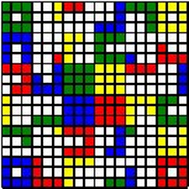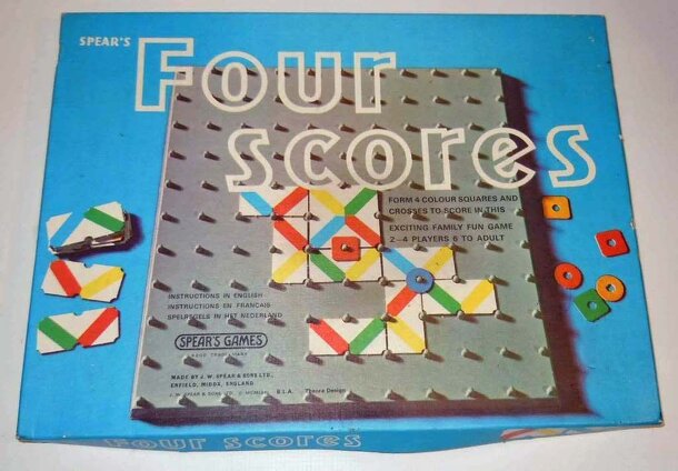 CONTENTS: a square plastic boardgame tiles with crosses in 4 colors round and squares markers in 4 colors OBJECT: The object of the game is to form, by skilfully placing the cards, as many crosses or squares as possible, each comprising all 4 colors. PLAY: Whenever a player succeeds in forming a four color cross or square, he places one of his counters on...