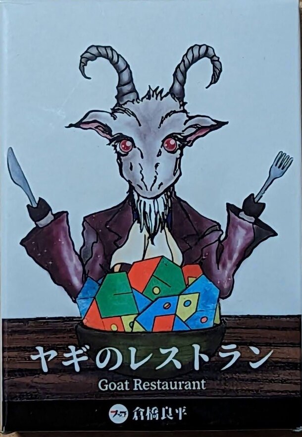 In Goat Restaurant, the players are chefs at a restaurant visited by goats, trying to make quirky paper meals which will satisfy the goat customers. The game includes several categories of cards representing the goats' preferences which guide how the players will arrange the game's unique paper cards. The shapes have slits, holes, are are non-traditional...