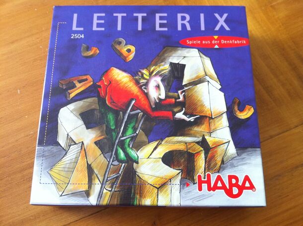 Letterbox is a 1+ player game about making words. Each player receives 5 double-sided square cards with a letter in each corner of the card. Players shuffle the cards and then begin play. They are allowed to rotate the cards, but not change their positions in the hand. Importantly, as long as the cards are all on their light side or all on their dark side...