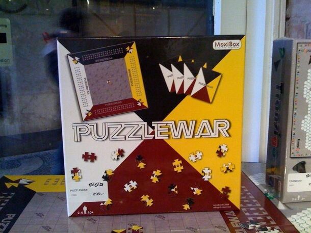 Each player has 112 jigsaw puzzle pieces (identically shaped, but with unique pattens on them). The pieces are played on the board to score points. There are also special action cards (to exchange pieces, etc). Rules provided in English, German, and Danish. The game board measures about 50cm X 50cm on table and about 25cm X 25 folded up. It has 15 X 15...
