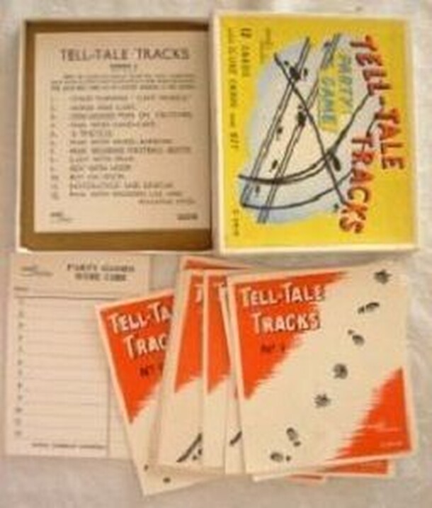 A clever party game. Each guest is given a card and all guests are encouraged to show each other their cards whilst chatting. If you know the answer, you write it on your record sheet. The guest who gets the most correct answers in the shortest time, wins. It is clever because you only have the images of tracks (footprints and the like) to go on and some...