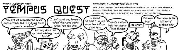 After evading local law enforcement, the crew of the Tempus find their beloved ship in a starport impound lot, in considerably more pieces than they last saw her. The crew must find a way to escape the planet, but in order to leave, they must first build six specific ship parts and install them in the ship without alerting the guards. Games in the Tempus...