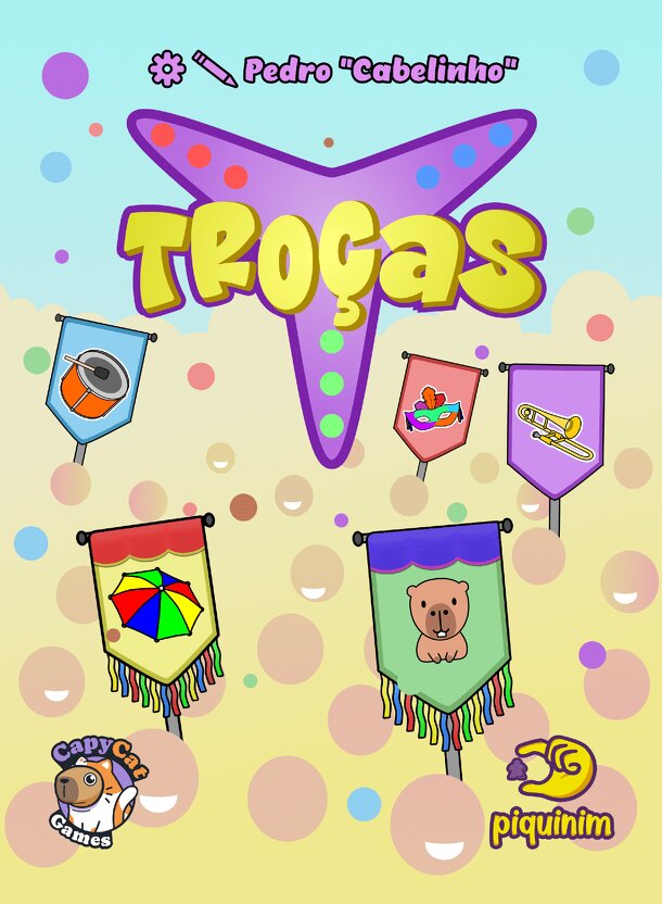 T.C.M. Grandões da Piquinim is coming to the streets of Olinda! Troças is a cooperative (or solo) game inspired by traditional carnival gatherings in Olinda, Pernambuco, Brazil. People are arriving non-stop, and your mission is to organize them into three different groups, maintaining the diversity of the celebration. With an original card movement...