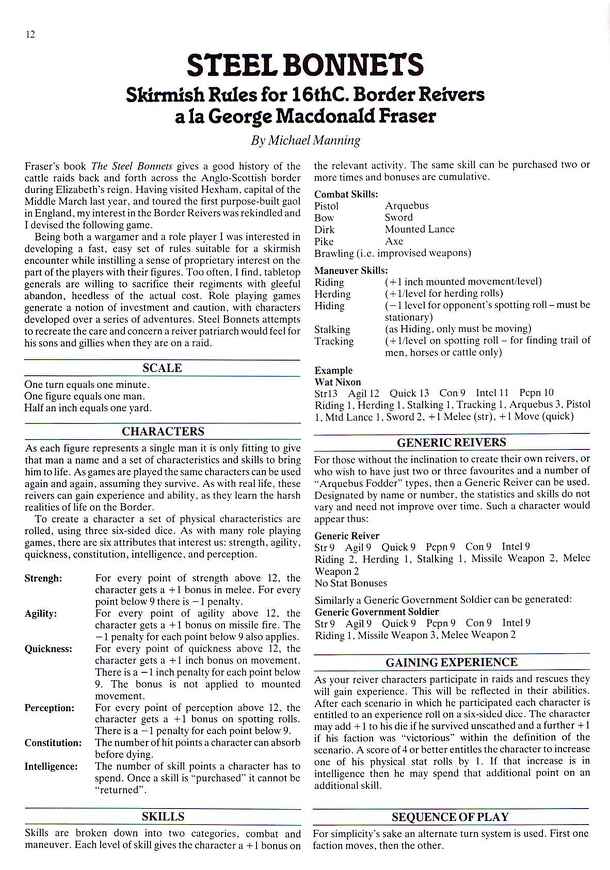 From the introduction of the rules set: "Fraser's book The Steel Bonnets gives a good history of the cattle raids back and forth across the Anglo-Scottish border during Elizabeth's reign. Having visited Hexham, capital of the Middle March last year, and toured the first purpose-built gaol in England, my interest in the Border Reivers was rekindled and I...