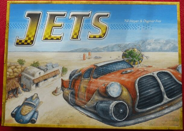 Jets is a science fiction racing game that does not use a game board, instead you play on a very large surface (for instance your carpet). Each player receives one jet-racer. Your jet is moved by placing a distance token which varies in length according to your set speed in front of your jet. Cards are supplied to improve the special abilities of your...