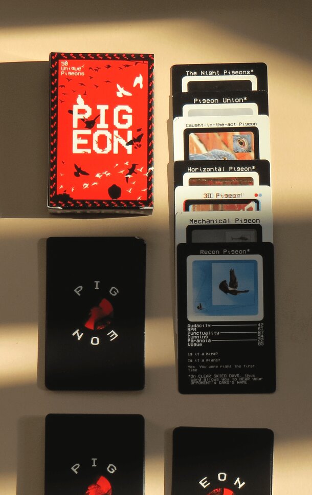 FOR THE FIRST TIME EVER simulate the intricate social webs of Pigeon East London (East Pigeon London). Every game another pigeon day in the eternal struggle for the next pigeon day, in this satirical and true-to-life card game. 50 REAL PIGEONS, each vital to their community and cause, are fighting the ideological battle of their little bitty pigeon...