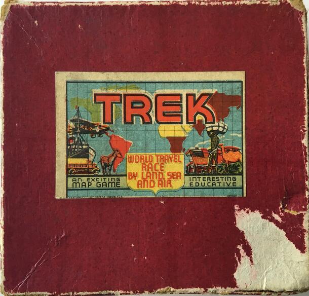 This is a roll and move game across a map of the world divided into a grid 52 spaces wide (E-W) and 33 spaces deep (N-S). There are four start spaces, two on each of the east and west edges, and travellers (wooden triangles) must use a variety of vehicles (wooden cubes and cylinders) to get to the opposite edge of the board and on the other side of the...