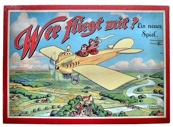 On the cover written: "Weltflug - Spiel. Auf dem Luftwege rund um die Erde. Das neuzeitliche Gesellschaftsspiel von Walter Mackenthun". The board game published by Edler & Krische in Hannover 1925. Typical roll and move board game with 100 stops. The first player, who cross 100 squares, wins the game. Game board is made with many printed aerial...