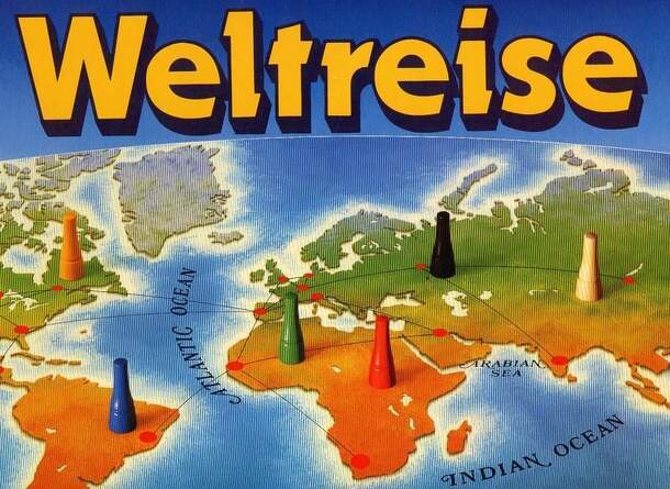 Translation/paraphrase from the back of the box: "Weltreise: Play & discover the world! The suitcases are packed. The airplane is ready. Travel to the most beautiful places in the world. If you fly from Paris to New York, will there be time to get to Miami - or would it be better to go from Chicago to Tokyo...? Whichever you choose, it will be a grand...