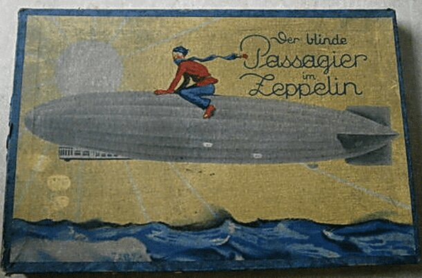 Objective: be the first getting all of the meeples in your home base on board of the Zeppelin - acting by turns - each player starts with 6 meeples, placed on her/his home base; roll the die: if it shows a 1 - 5, place one of your meeples onto the correspondent waiting position; with a '6' it ends up with a safe seat in the cabin. Turn ends after a '6' or...