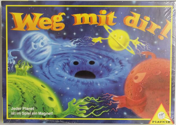 All pieces are magnets in a transperant covered plastic maze. On your turn you roll two dice and use a magnetic stick to move your pieces. There are holes with different values for the different players. When a piece is fallen in a hole it will be scored. Game end when one player has only two pieces left. You can "accidentally" move pieces of other...