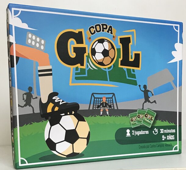 Copagol is a board game for two people that recreates a soccer match between two national teams (among 16 countries). It is mainly based on dice rolling although it also has cards that are played instantly. This board game lets the players enjoy the main actions of a soccer match (goals, attack, defense, offside, corner kick, penalty shoot, foul, yellow...