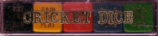 The player takes the five coloured dice (red, black, blue, green, yellow). The red dice is your bowling dice. "No Ball" scores one run for the batting team. "Wide" means bowl again. "Bowled" signifies next man in, "Bowling on Wicket" means moving onto the batting dice (black). The black dice is the batting dice. "Defensive Stroke" means bowl again. "Bat...