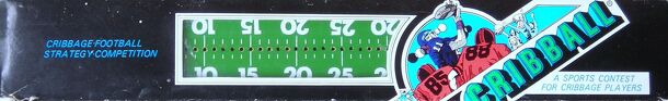 Cribball is a sports action game for Cribbage players, involving the strategy of Cribbage and the competitive action of Football. To play, all that is needed is a standard deck of playing cards and a basic knowledge of Cribbage. The game played in two timed halves, of 30 or 60 minutes. Each player receives 3 time outs. The board is an illustrated football...